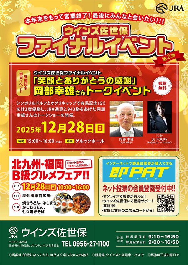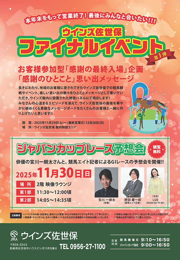 2025年12月28日をもって閉館した「ウインズ佐世保」における、ファイナルプロモーションの全体プランニング、イベント運営、および広報支援を担当いたしました。